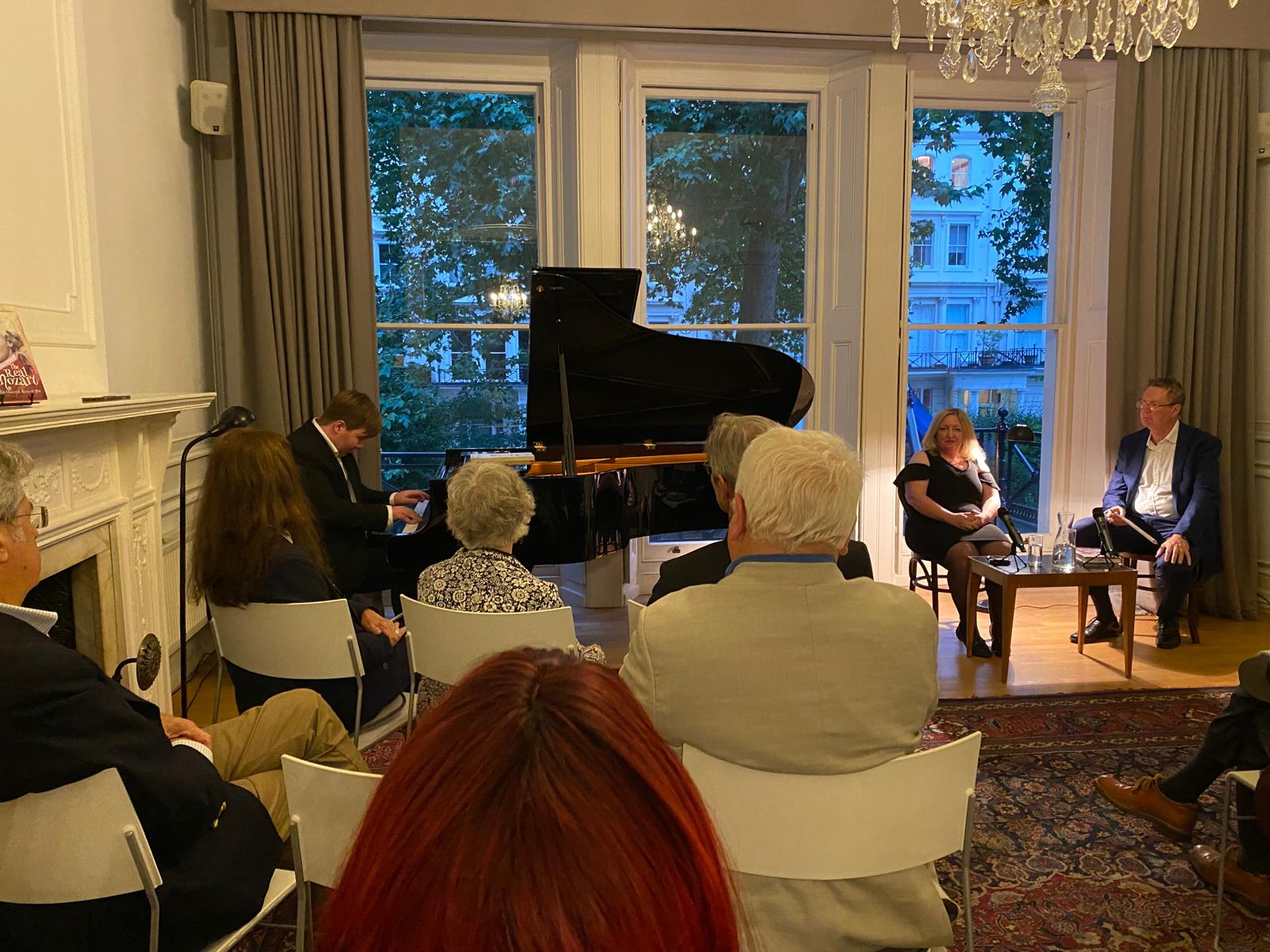 I had the great honor to be on the podium together with Mr. Ian Page, the wonderful conductor and head of The Mozartists and we talked about the making of my book. Keep in mind that I am Austrian and that this is my first book that I wrote in English language. In between we had a wonderful Piano Concert.